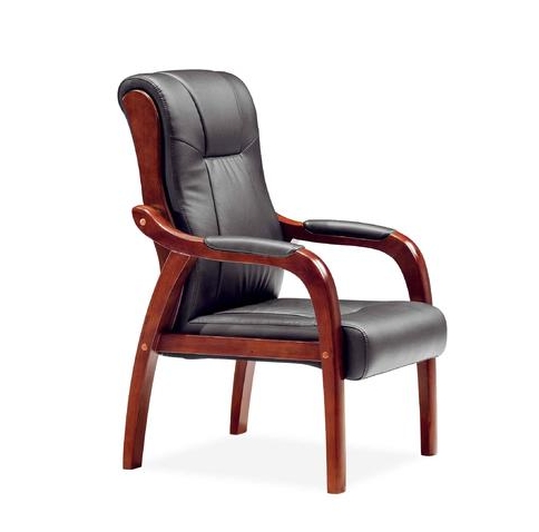 华中伟业会议椅胡桃原木色/黑色真皮650W×820D×1090H