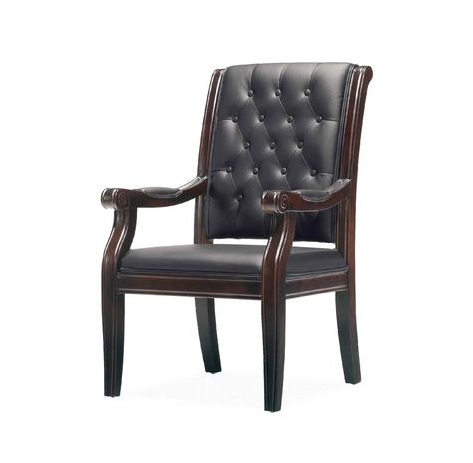 华中伟业会议椅胡桃色/黑色真皮635W×715D×1045H