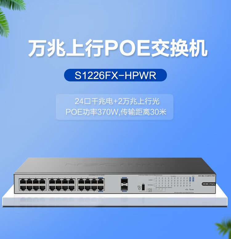 华三(H3C)24口千兆企业级POE供电网络交换机S1226FX-PWR2万兆光口/225W