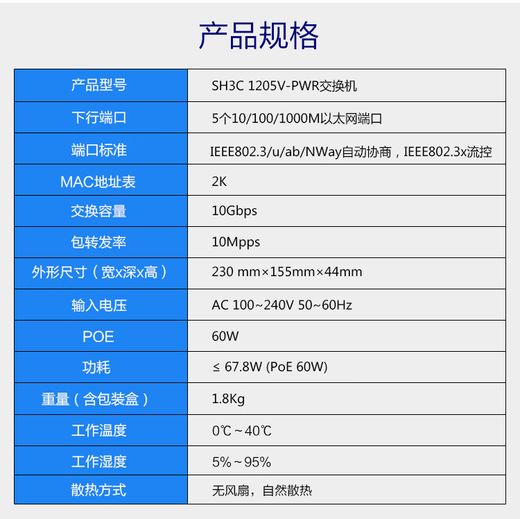 首页 / 电脑办公 / 华三(H3C)S1205V-PWR5口千兆非网管企业级POE交换机桌面型交换器网络集线器网线分流器分线器