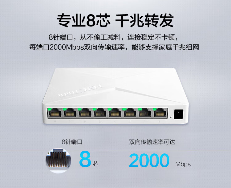首页 / 电脑办公 / 新华三(H3C)5口8口千兆交换机二层非网管弱电箱交换器监控网S1208V-8口千兆-即插即用-铁壳散热