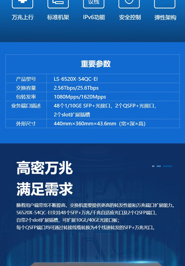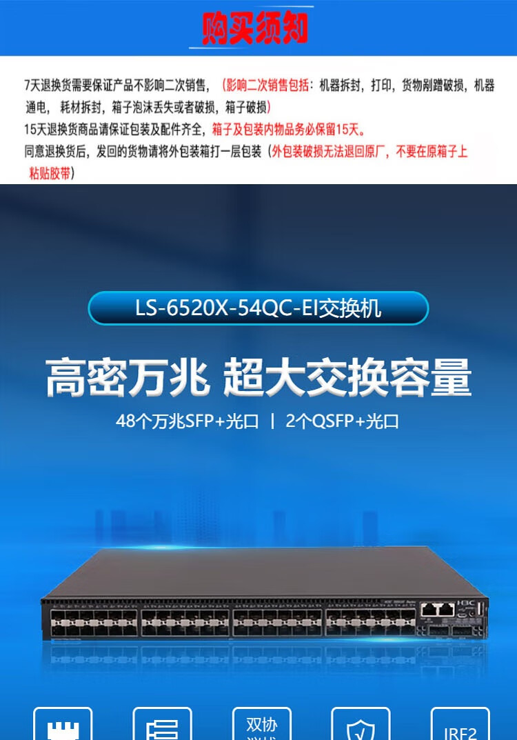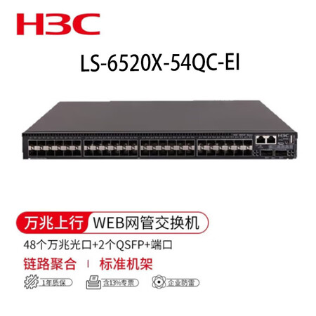 华三(H3C)LS-6520X-54QC-EI汇聚交换机48个万兆光口2个QSFP+端口2个扩展插槽(双电源双风扇)商用