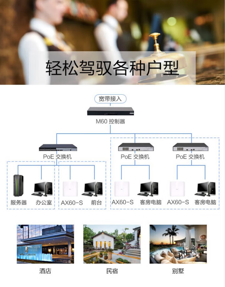 首页 / 电脑办公 / 华三(H3C)Mini无线ap面板双频千兆全屋wifi企业酒店别墅全屋wifi无线接入点PoE供电AC管理4个双网口+8口POE/150㎡