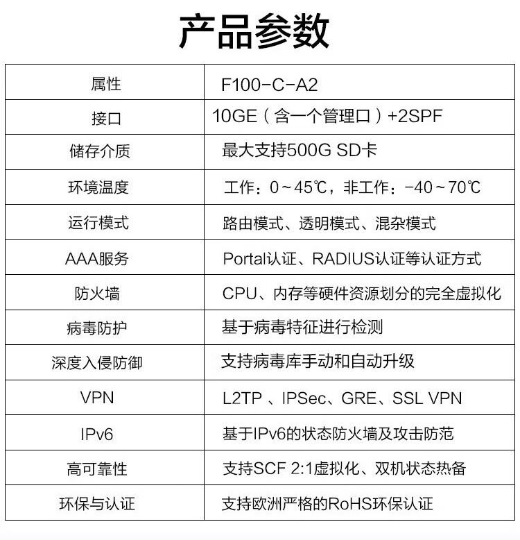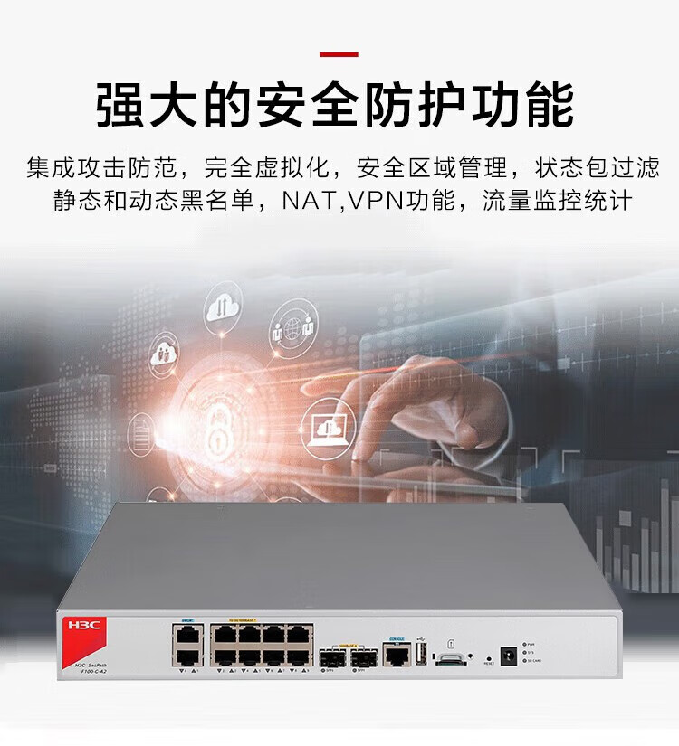 华三(H3C)F100-C-A2企业级高性能硬件防火墙10*GE+2*SFP千兆VPN网络安全上网行为管理中小型带机量200吞吐量1.2G