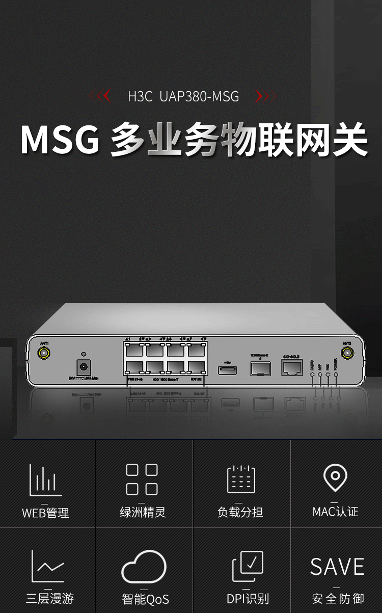 华三(H3C)UAP380-MSG多业务千兆企业级AC无线控制器可管理8个AP8口千兆/4口整机POE功率60W