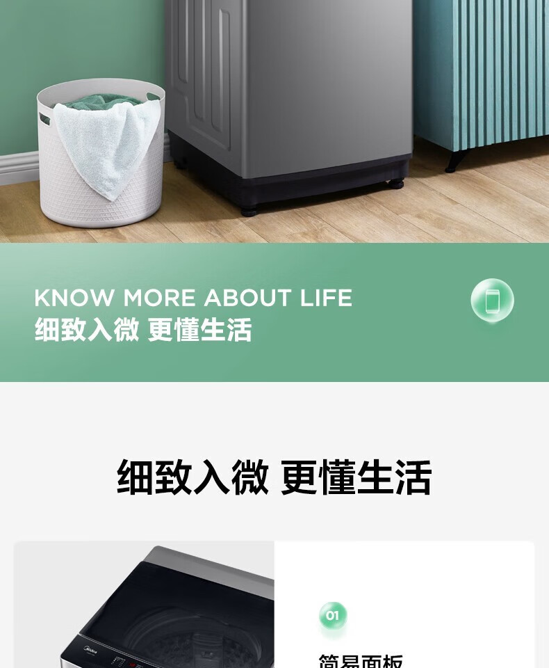 首页 / 家用电器 / 美的(Midea)洗衣机全自动波轮8公斤大容量宿舍租房家用内桶免清洗9小时智能预约品质电机节能省电以旧换新水电双宽MB80V33B