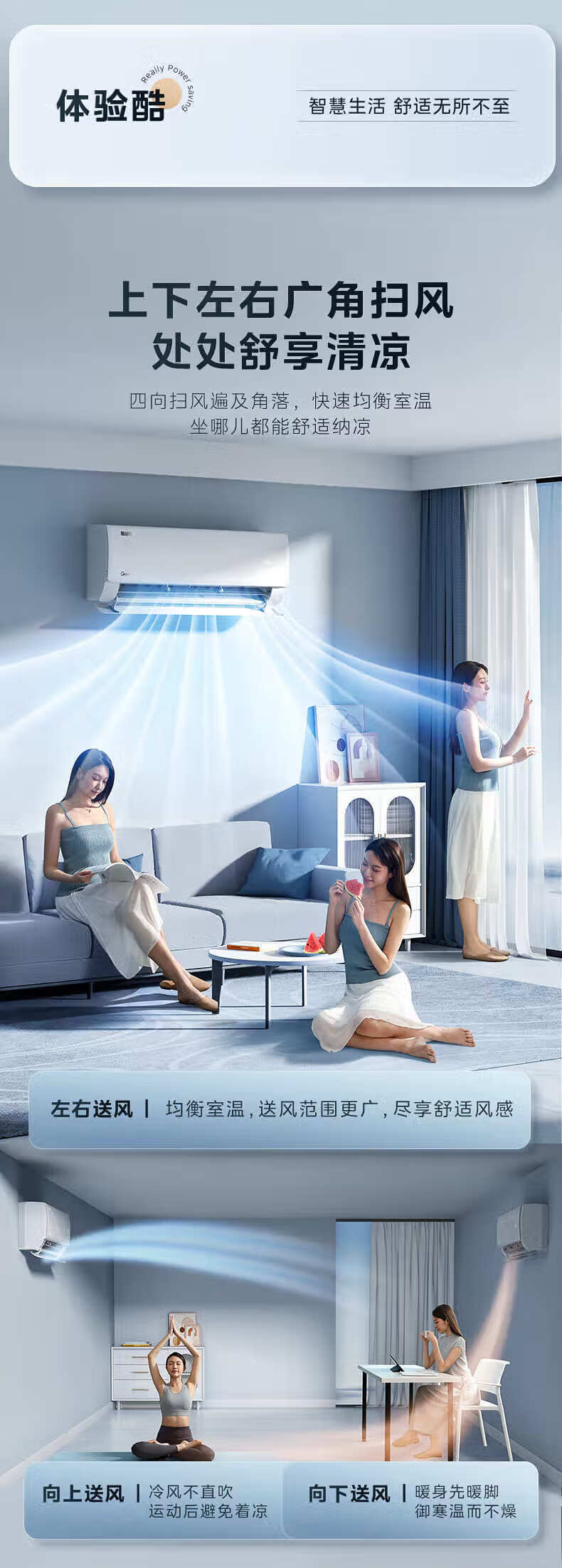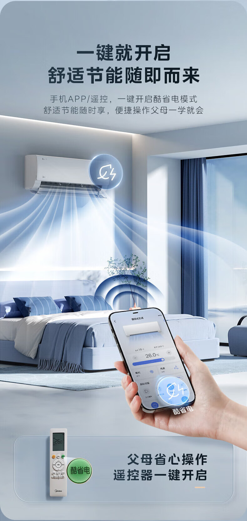 美的(Midea)酷省电空调挂机新一级能效全直流变频节能省电冷暖壁挂式智能防直吹家用空调1.5匹一级能效【酷省电】省电25%