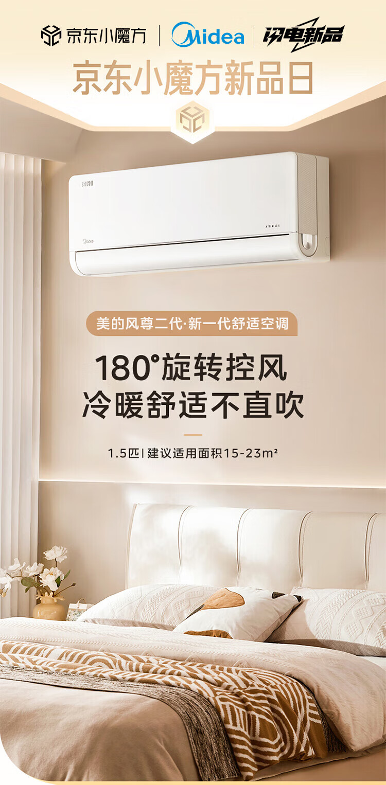 美的(Midea)空调1.5匹风尊二代新一代舒适空调一级能效变频冷暖壁挂式挂机智能家电云朵系列大1匹一级能效风尊二代全国联保配送