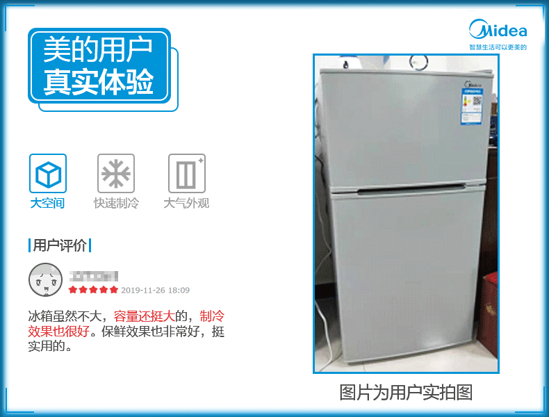 首页 / 家用电器 / 美的(Midea)小冰箱租房用小型双开门112升客厅迷你家用电冰箱BCD-112CM