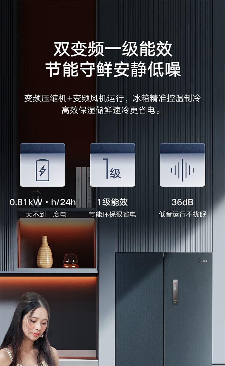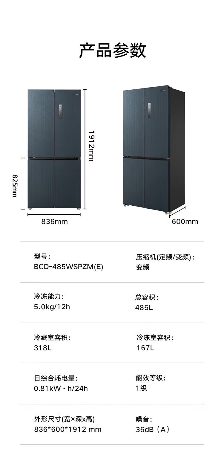 首页 / 家用电器 / 美的(Midea)60厘米超薄嵌入式十字对开门四门风冷无霜一级能效底部散热电冰箱5mm微缝嵌入BCD-485WSPZM(E)