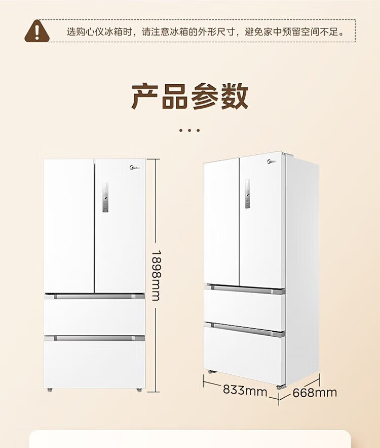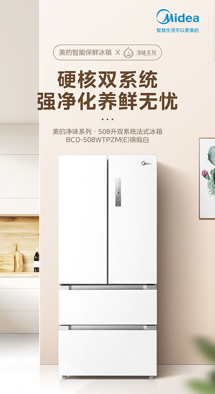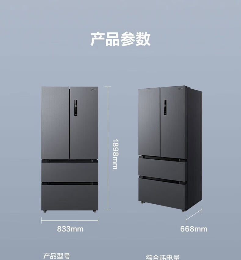 首页 / 家用电器 / 美的508升528升法式多门四开门风冷无霜一级能效19分钟急速净味电冰箱双系统双蒸发器MR-532WFPZE