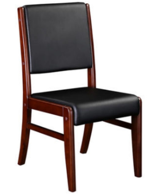 华中伟业会议椅胡桃色+黑色真皮560W×480D×920H
