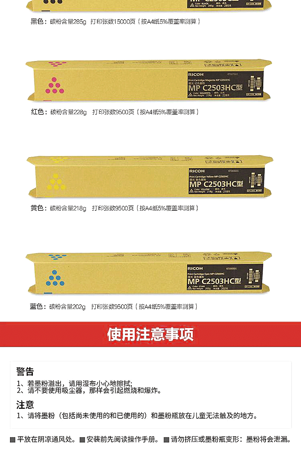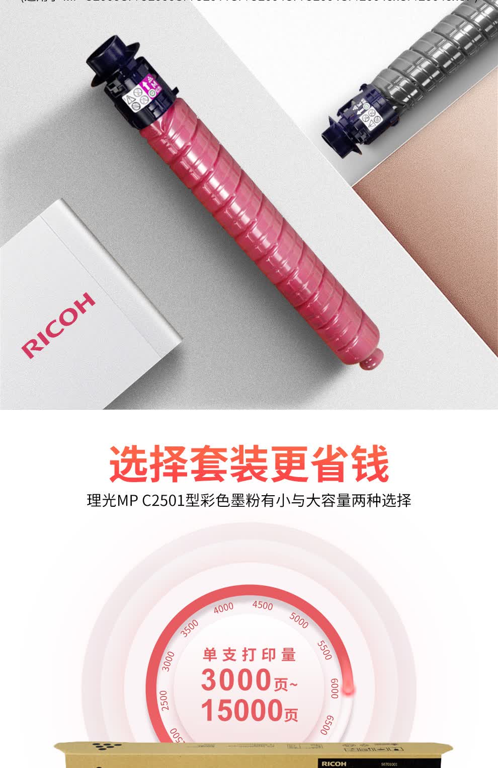 首页 / 电脑办公 / 理光(Ricoh)MPC2503C彩色墨粉碳粉盒适用C2011/C2004/C2504exSPMPC2503HC型红色9500页