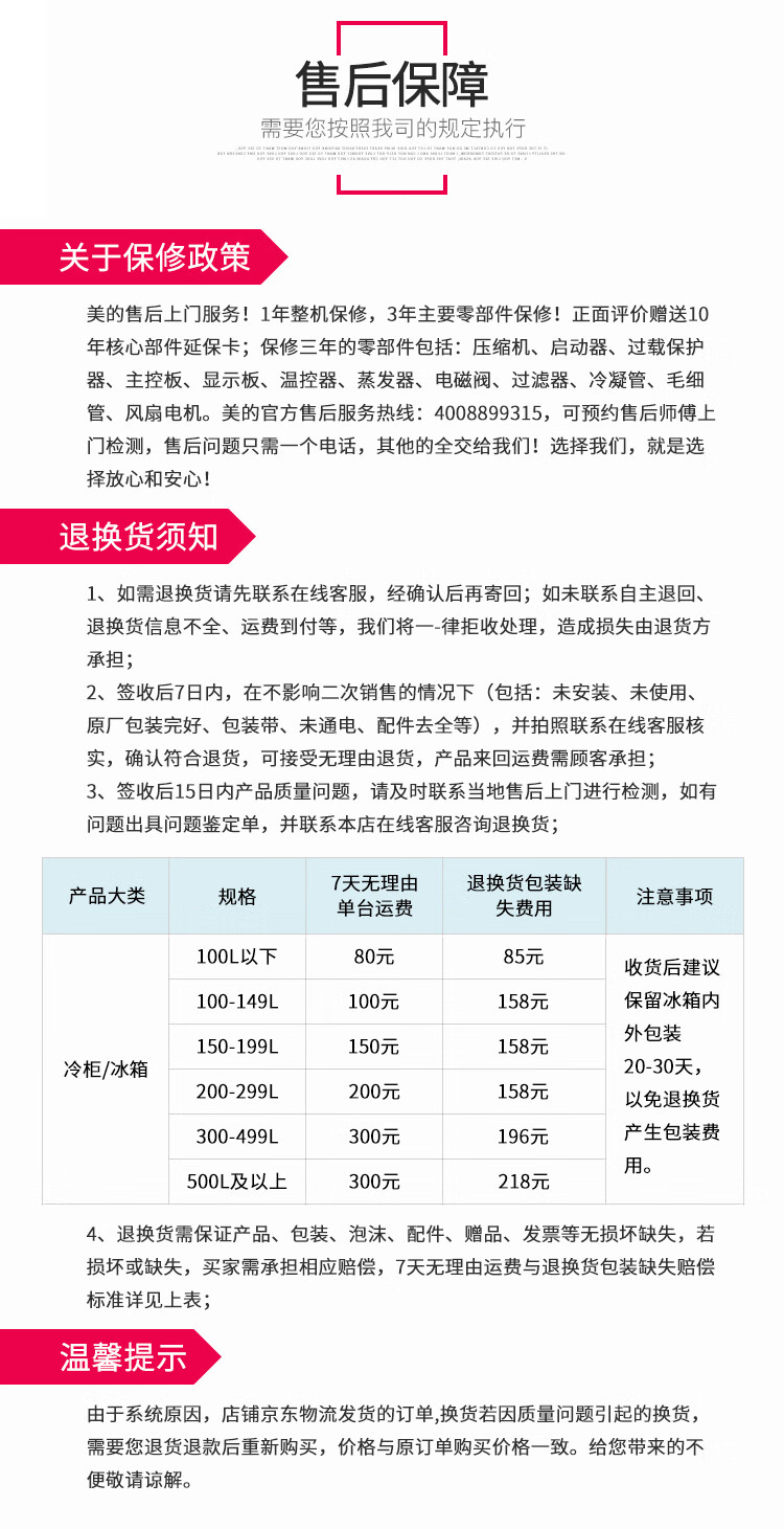 我们一直致力于持续提升服务水平,追求零客诉,我们为客户提供完善的售后服务。如果出现误单或者其他任何您不满意的情况,欢迎您第一时间与我们联系,我们将尽快为您做出回复和处理。200%退赔承诺,即如果漏单未送,订单款项全额退还给您,原订单商品同时再免费配送一次, 详见售后服务条款>>