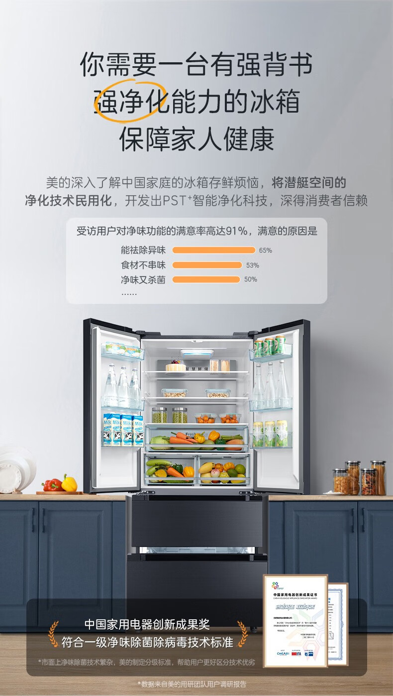 首页 / 家用电器 / 美的(Midea)冰箱508升多门对开门冰箱19分钟急速净味除菌一级能效双变频智能家电温湿精控家用双开门电冰箱508双系统双循环-极地白