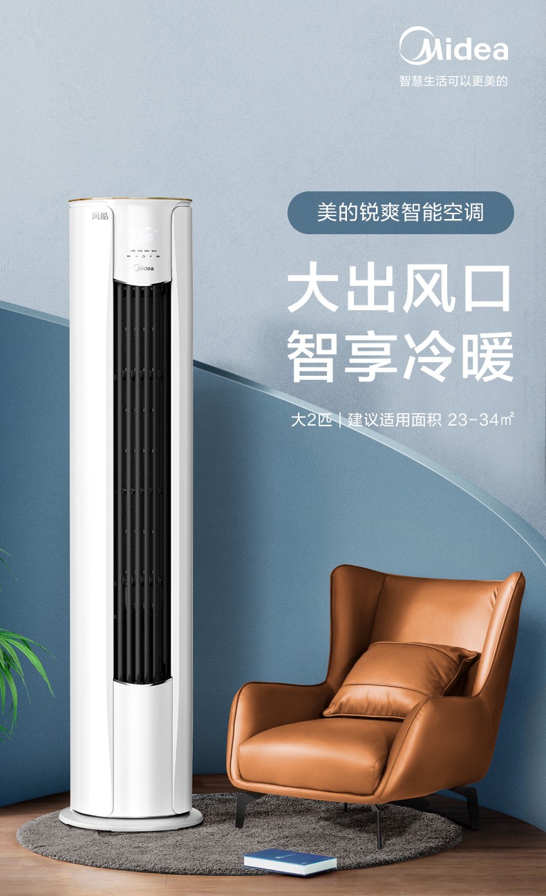 美的(Midea)空调2匹立式柜机新能效变频冷暖圆柱空调立柜式客厅空调落地式智能家电以旧换新2匹三级能效酷省电全天候节能51KS1-3P