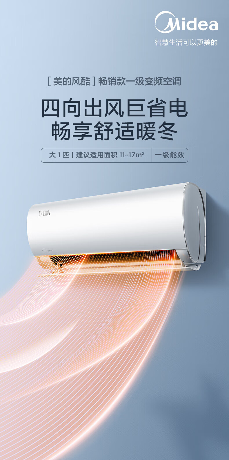 首页 / 家用电器 / 美的(Midea)空调挂机新一级能效酷金二代空调变频冷暖节能省电壁挂式卧室家用防直吹空调以旧换新大1匹一级能效酷金二代新升级