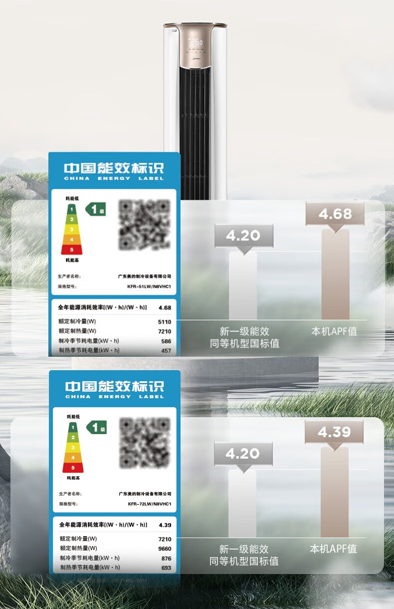 美的空调柜机2匹3匹新一级能效(锐静+风尊)全直流变频四代自清洁冷暖两用圆柱空调立式锐静风尊2匹一级能效【锐静】