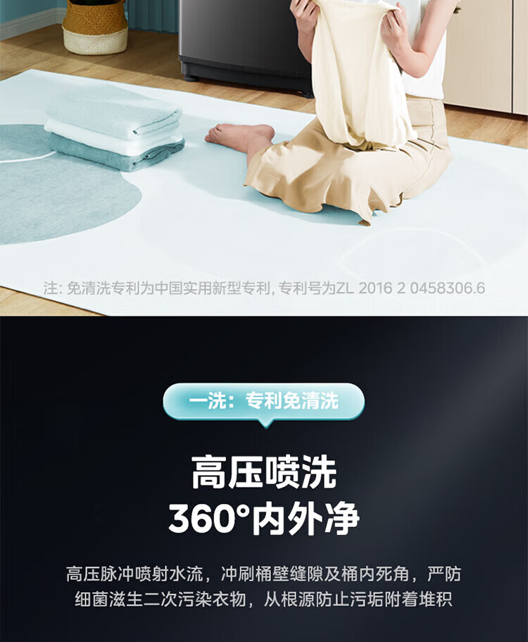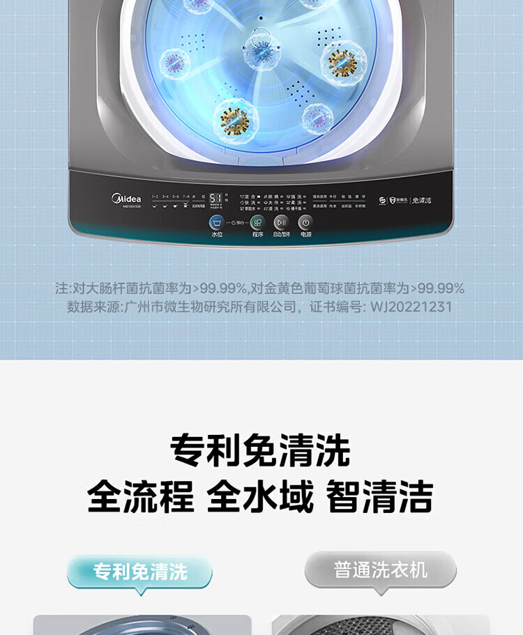 美的(Midea)10公斤波轮洗衣机全自动家用健康除螨抗菌防污染专利免清洗MB100V33B
