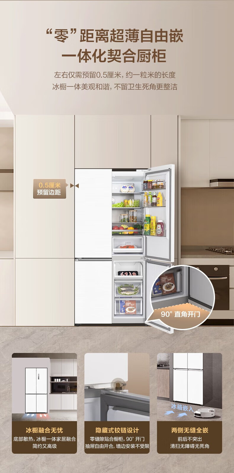 美的(Midea)十字对开门四开门风冷无霜零距离嵌入式一级能效双变频家用电冰箱436升零嵌MR-457WUSPZE苍穹灰
