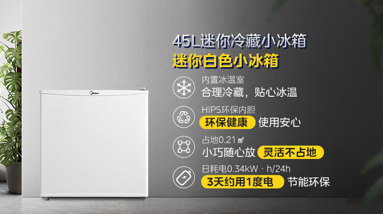 首页 / 家用电器 / 美的(Midea)458890112升小冰箱单开双开门冷藏冷冻可选电冰箱家用宿舍租房小型迷你冰箱小巧不占地节能便携【迷你型】45升带小冷温室BC-45M