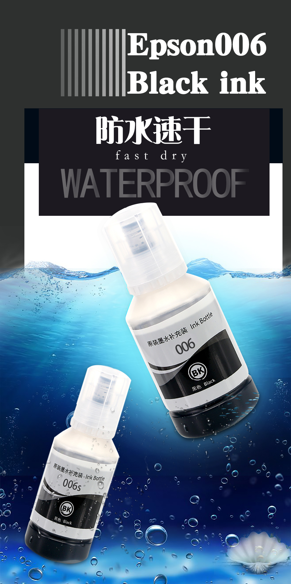 爱普生(EPSON)006黑色颜料墨水瓶(适用M1108/M1128/M1178/2128机型)原装006s小容量黑墨水