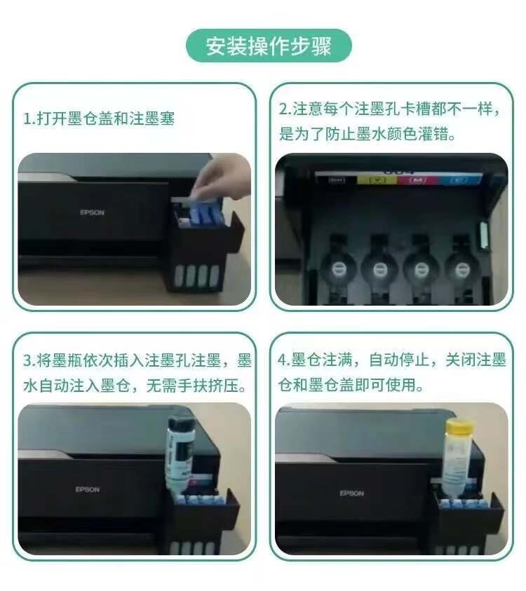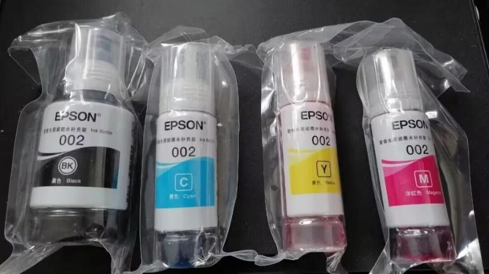 爱普生原装002打印机墨水L4158L4168L6168L6178L4166L4167L6198二套送4瓶(共12支)
