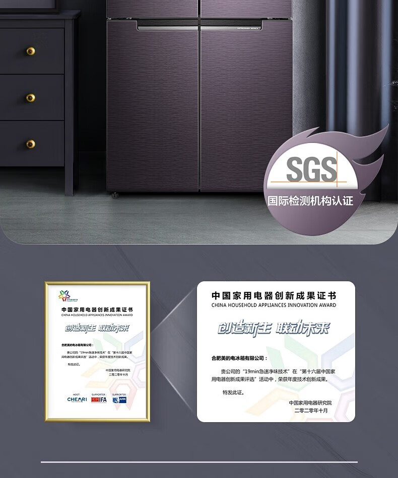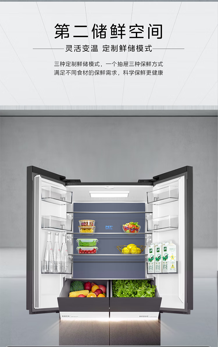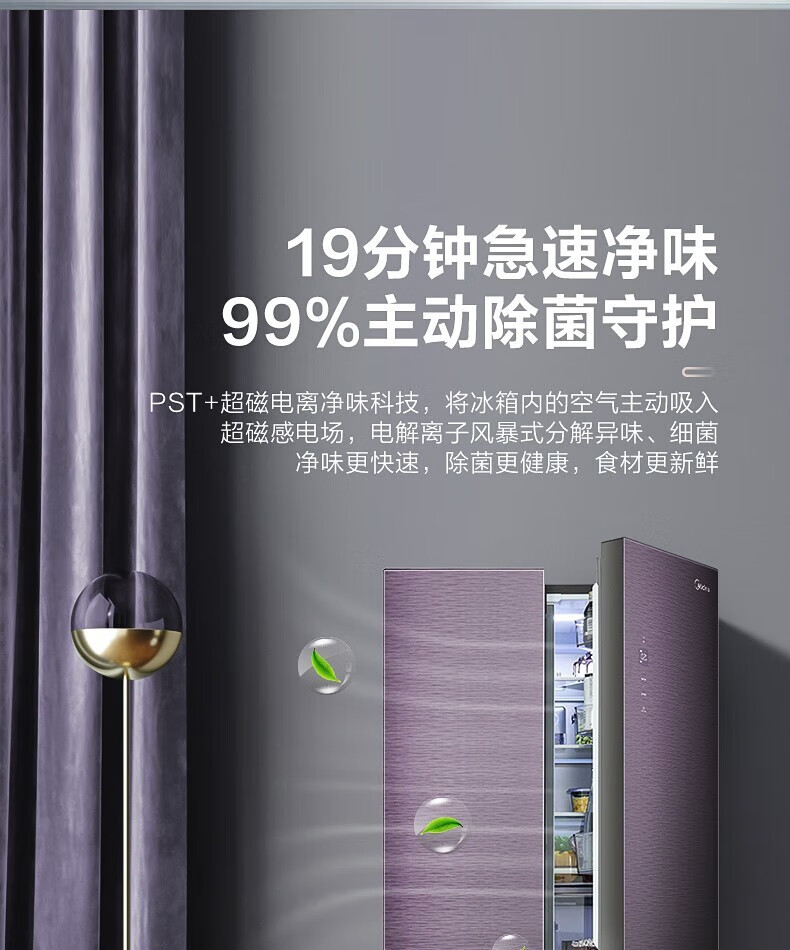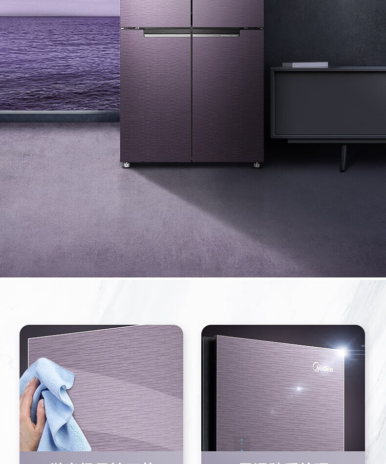 首页 / 家用电器 / 美的(Midea)十字对开门四门风冷无霜一级能效双变频智能净味大容量家用电冰箱零嵌底部散热BCD-519WSGPZM白色