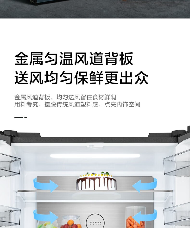 美的(Midea)十字对开门四门风冷无霜一级能效双变频智能净味大容量家用电冰箱零嵌底部散热BCD-519WSGPZM白色