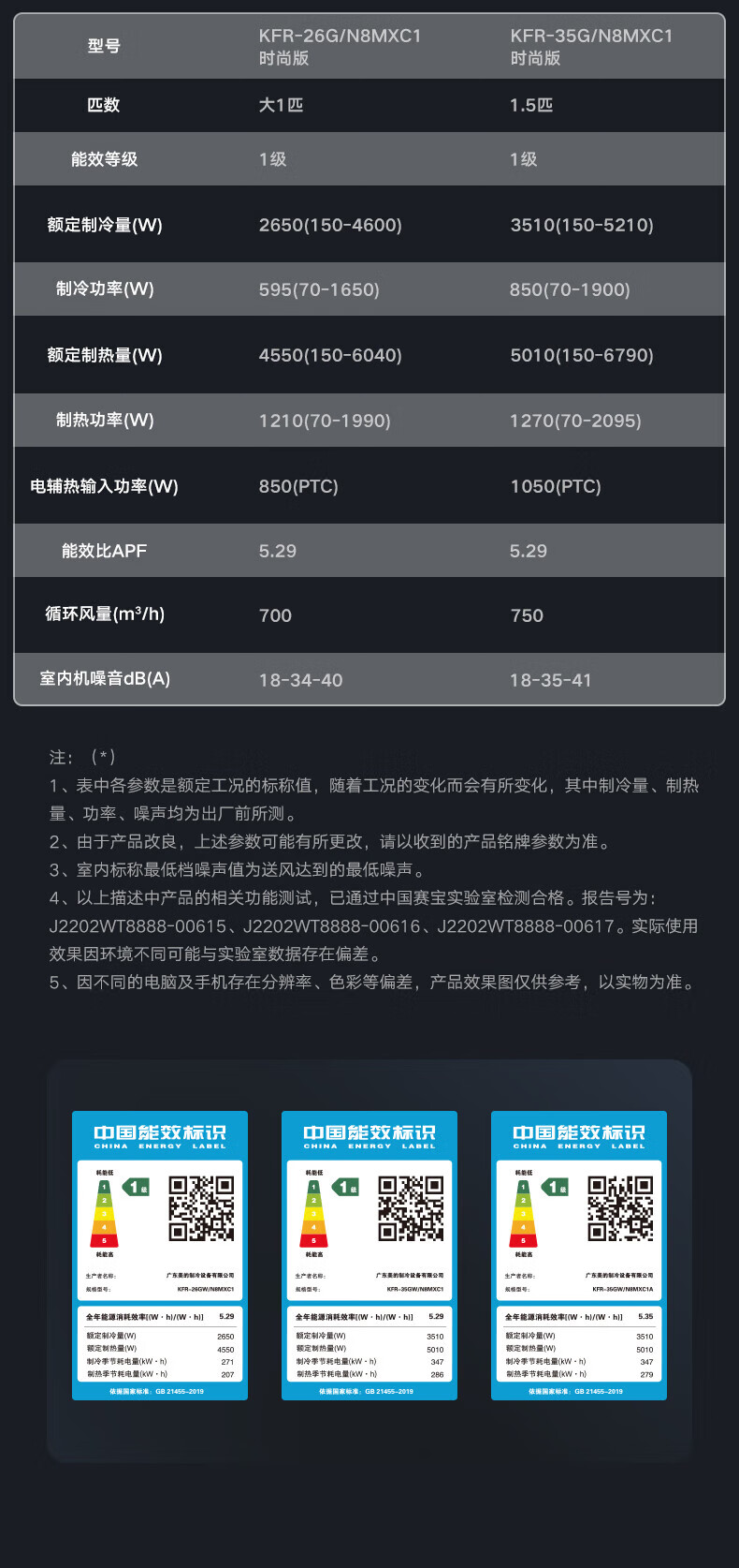 美的(Midea)空调挂机1.5匹风尊时尚版新一级全直流变频冷暖两用壁挂机式1匹空调卧室以旧换新KFR-大1匹一级能效:风尊科技版MXC1