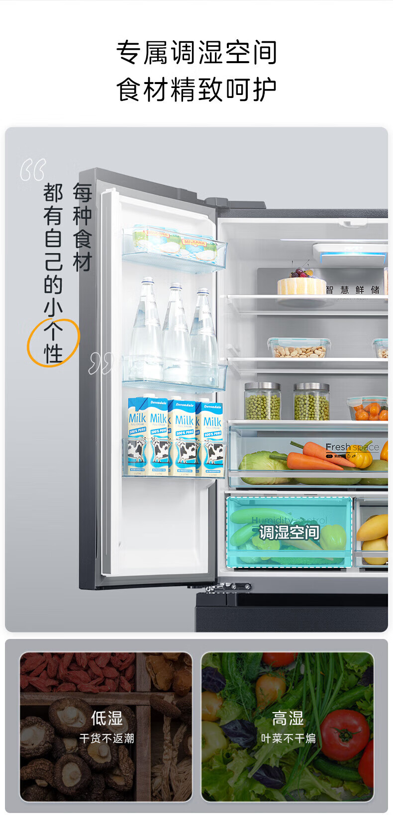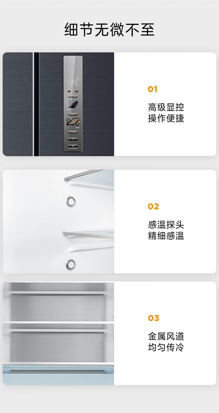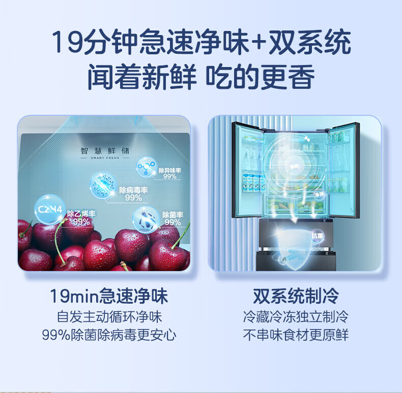 美的(Midea)508升冰箱19分钟急速净味法式四开门双系统双循环多门大容量BCD-508WTPZM(E)莫兰灰
