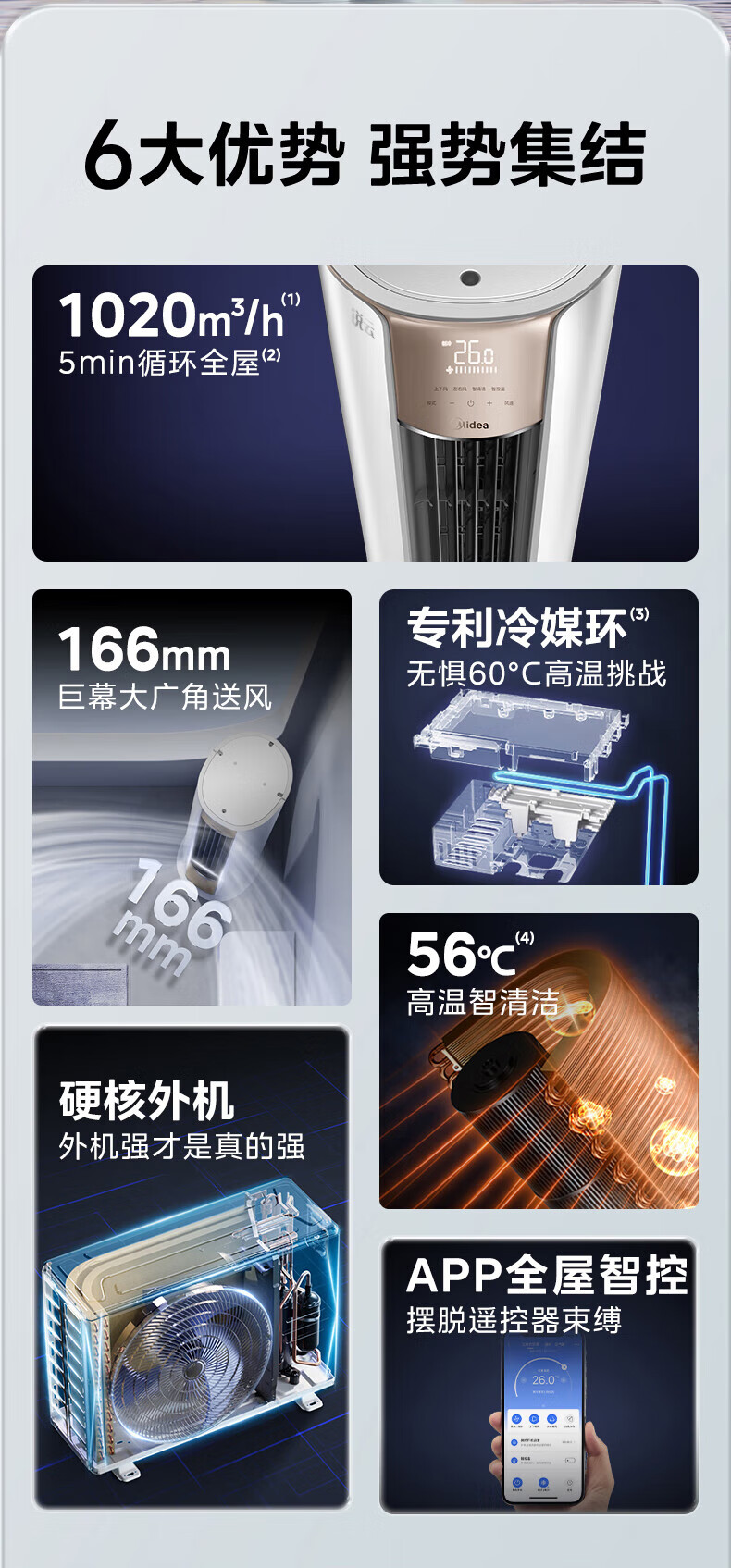 首页 / 家用电器 / 美的(Midea)空调柜机锐静二代新一级能效全直流变频冷暖两用四代自清洁家用客厅圆柱立式落地式大风口2匹一级能效