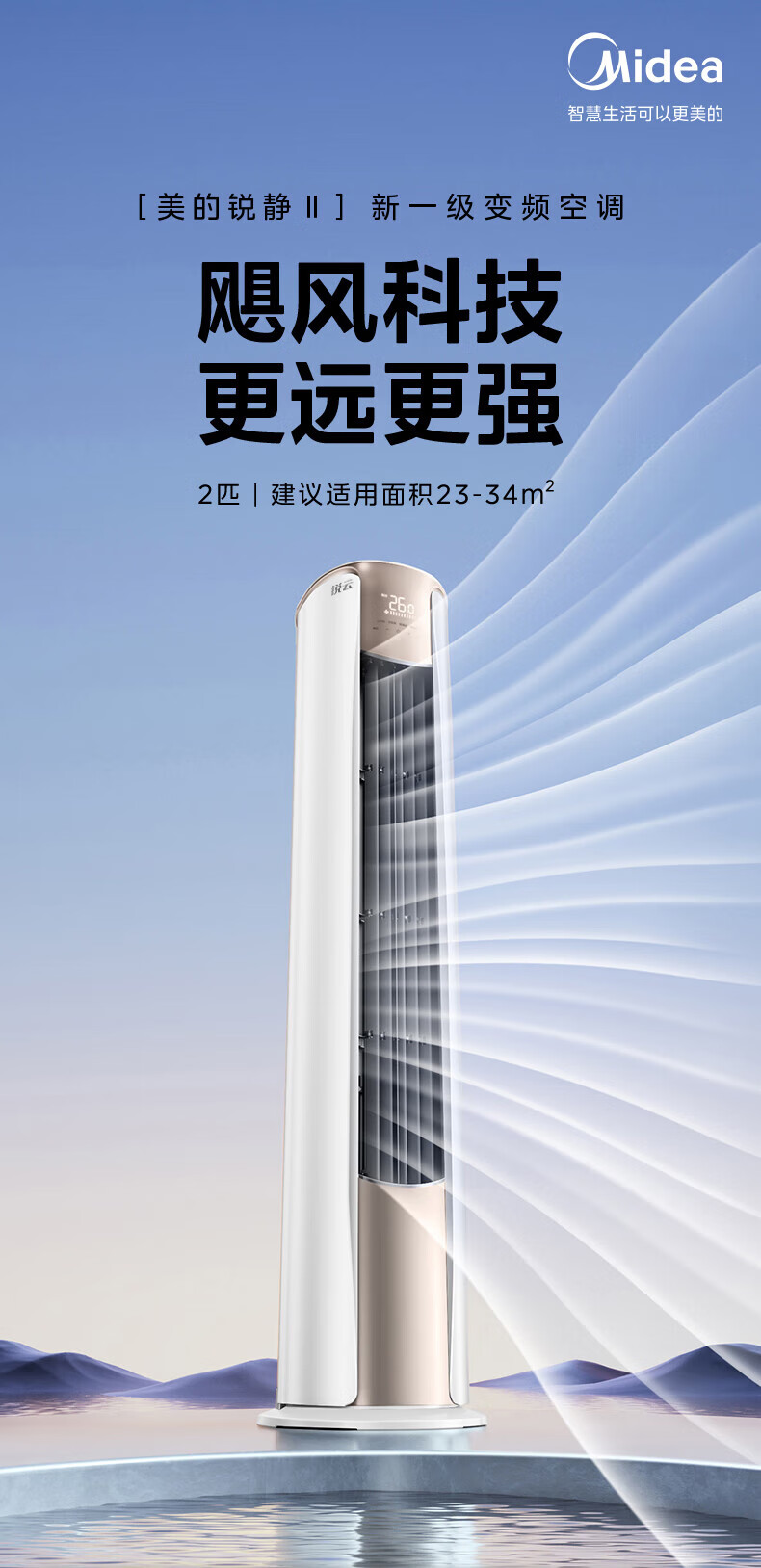 美的(Midea)空调柜机锐静二代新一级能效全直流变频冷暖两用四代自清洁家用客厅圆柱立式落地式大风口2匹一级能效