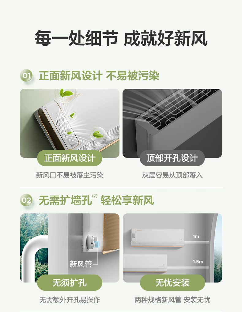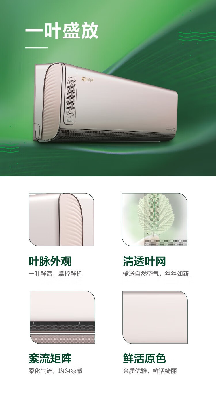 美的(Midea)新风空调挂机大1匹/1.5匹/2匹一级能效智能变频壁挂式空调无风感领鲜者2匹一级能效50KW200(1)