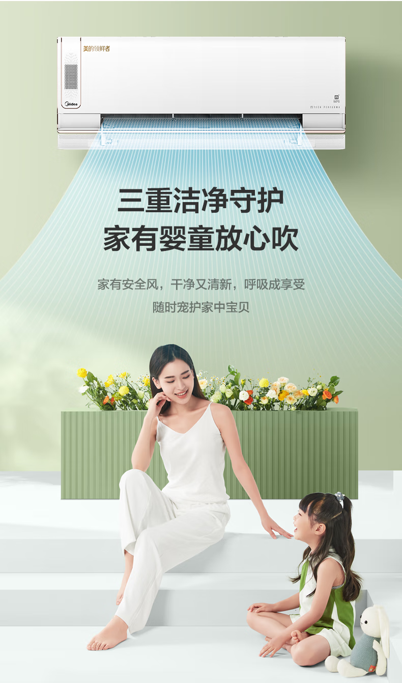 首页 / 家用电器 / 美的(Midea)新风空调挂机大1匹/1.5匹/2匹一级能效智能变频壁挂式空调无风感领鲜者2匹一级能效50KW200(1)