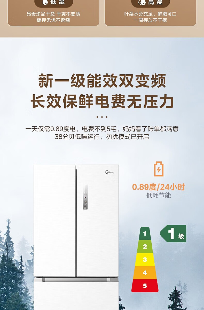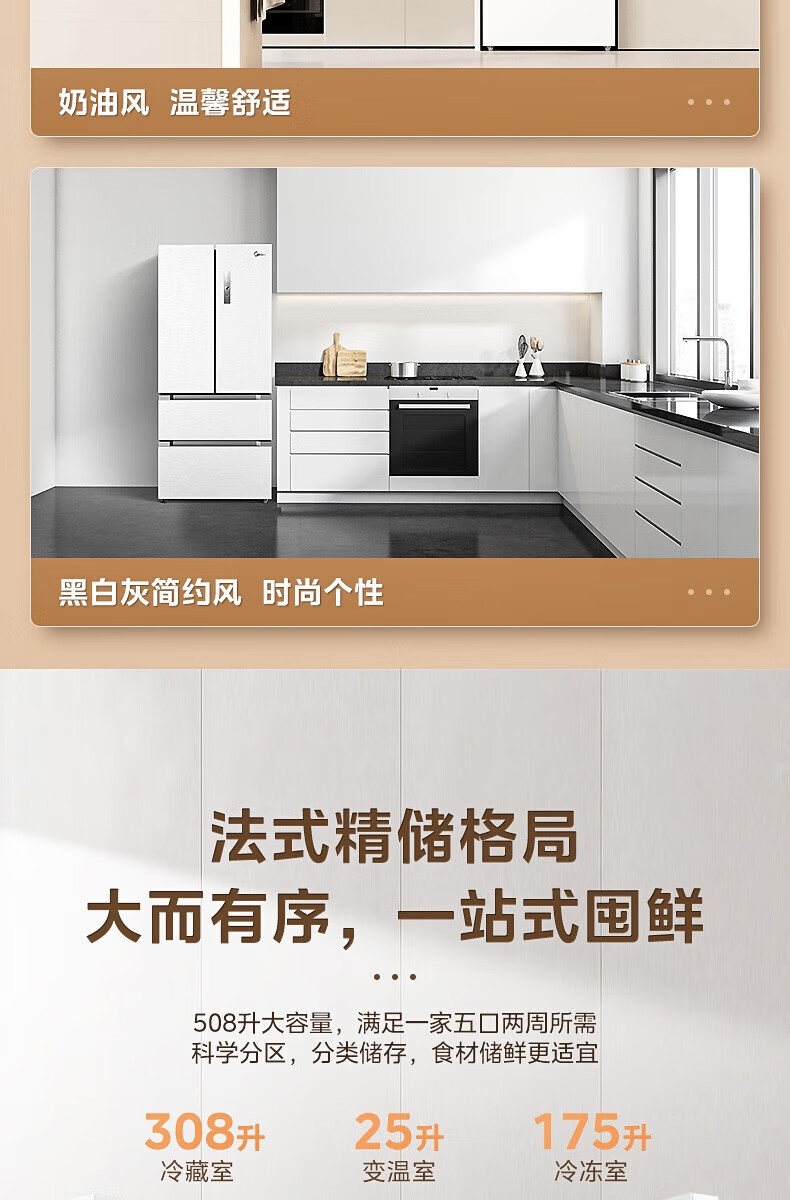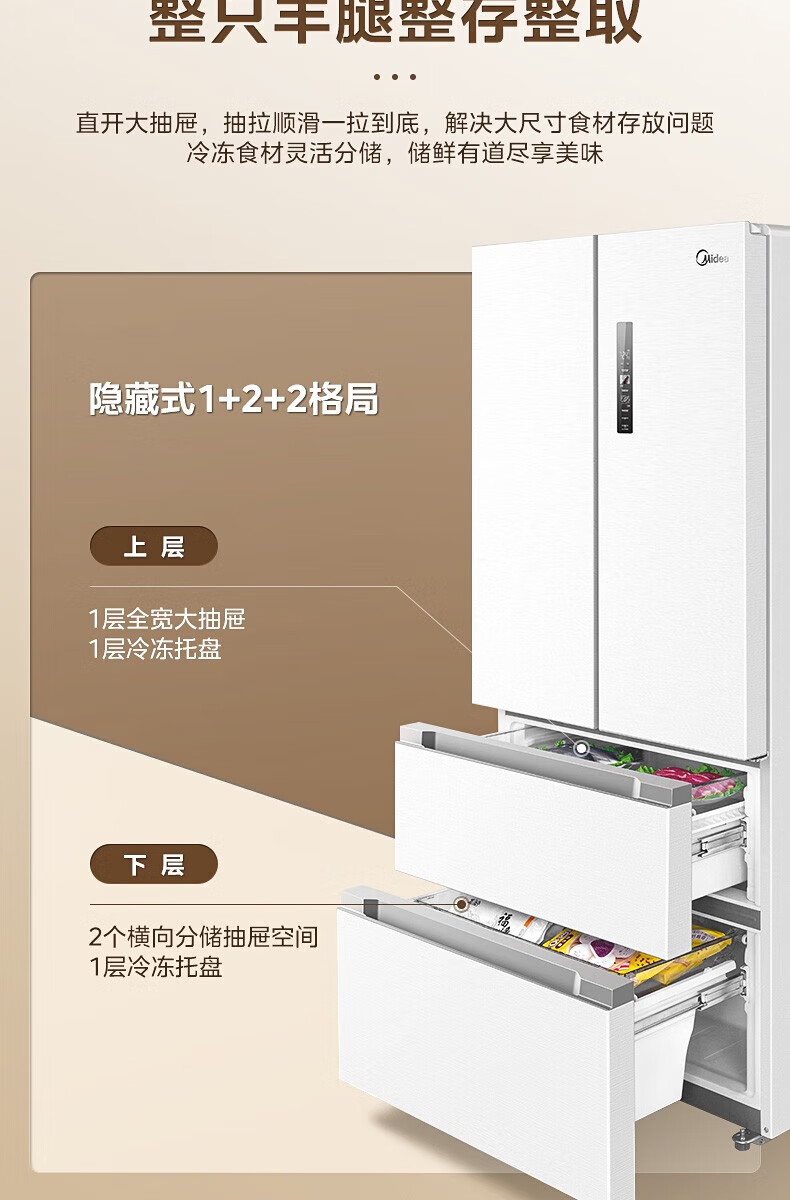 美的(Midea)508升白色款法式对开双开门多门智能家用电冰箱除菌净味双系统BCD-508WTPZM(E)