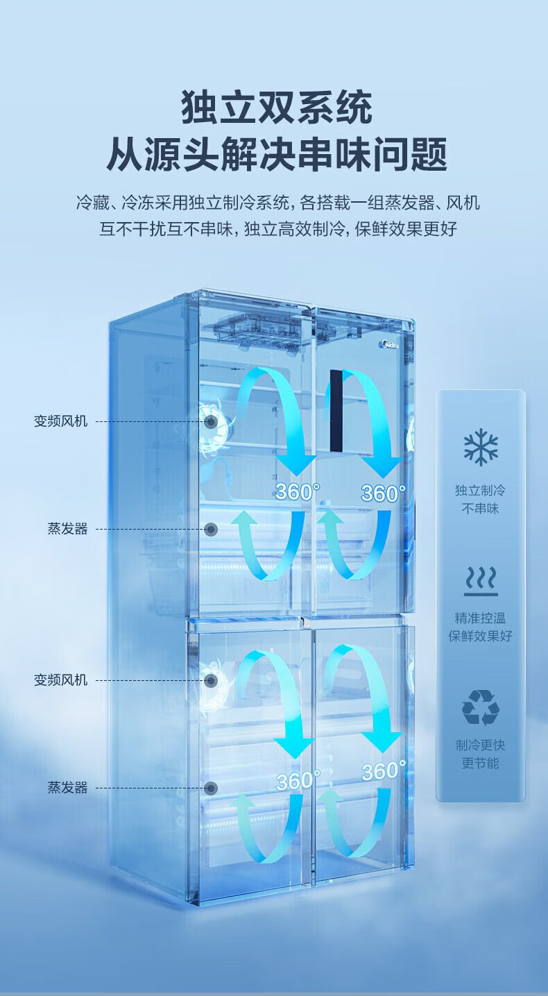 美的(Midea)双系统双循环风冷无霜对开双开十字四开门家用电冰箱一级能效变频大容量MR-531WSPZEMR-531WSPZE