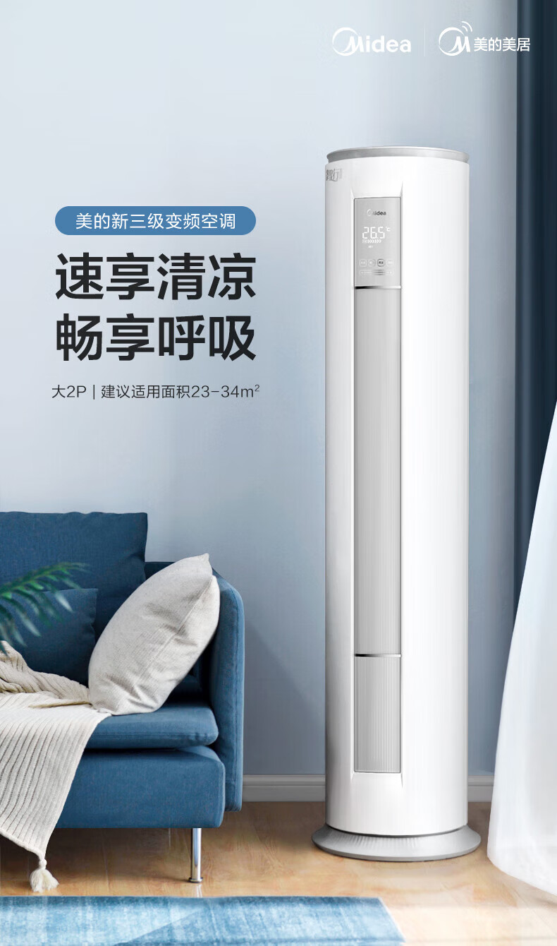 美的(Midea)锐爽/风酷空调柜机MJC3变频冷暖大风口家用立式客厅圆柱空调智能家电APP远程控制大3匹三级能效72MJC3风酷【智控温大风口】