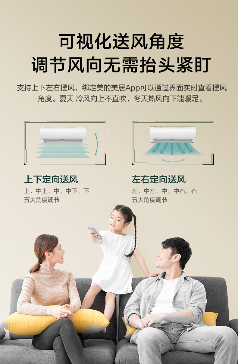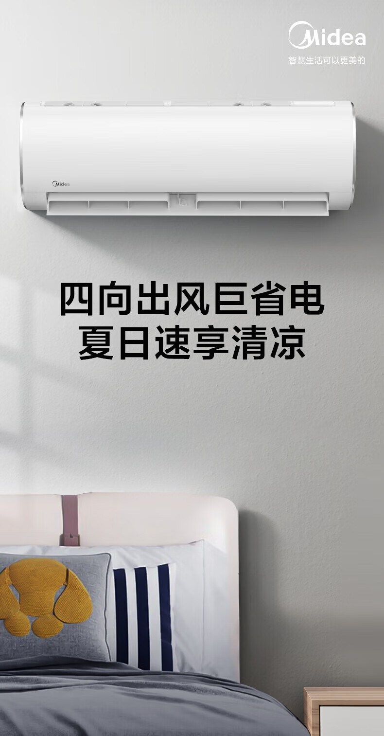 美的(Midea)空调1.5匹新一级能效智能变频空调冷暖壁挂式空调卧室空调5匹一级能效鲜逸35PHA1