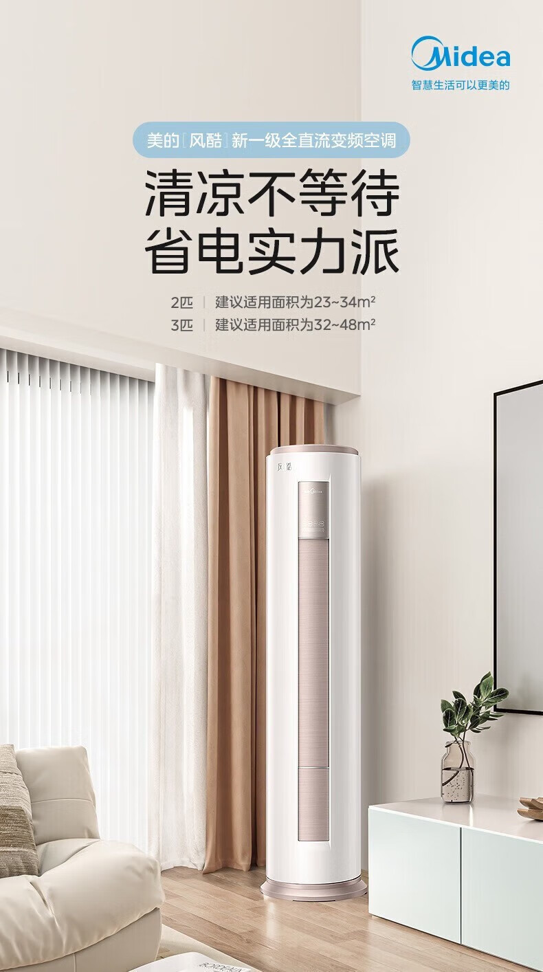 首页 / 家用电器 / 美的(Midea)空调2匹/3匹风酷新一级能效变频冷暖智能家电自清洁客厅圆柱空调立式柜机3匹一级能效72MJC1B