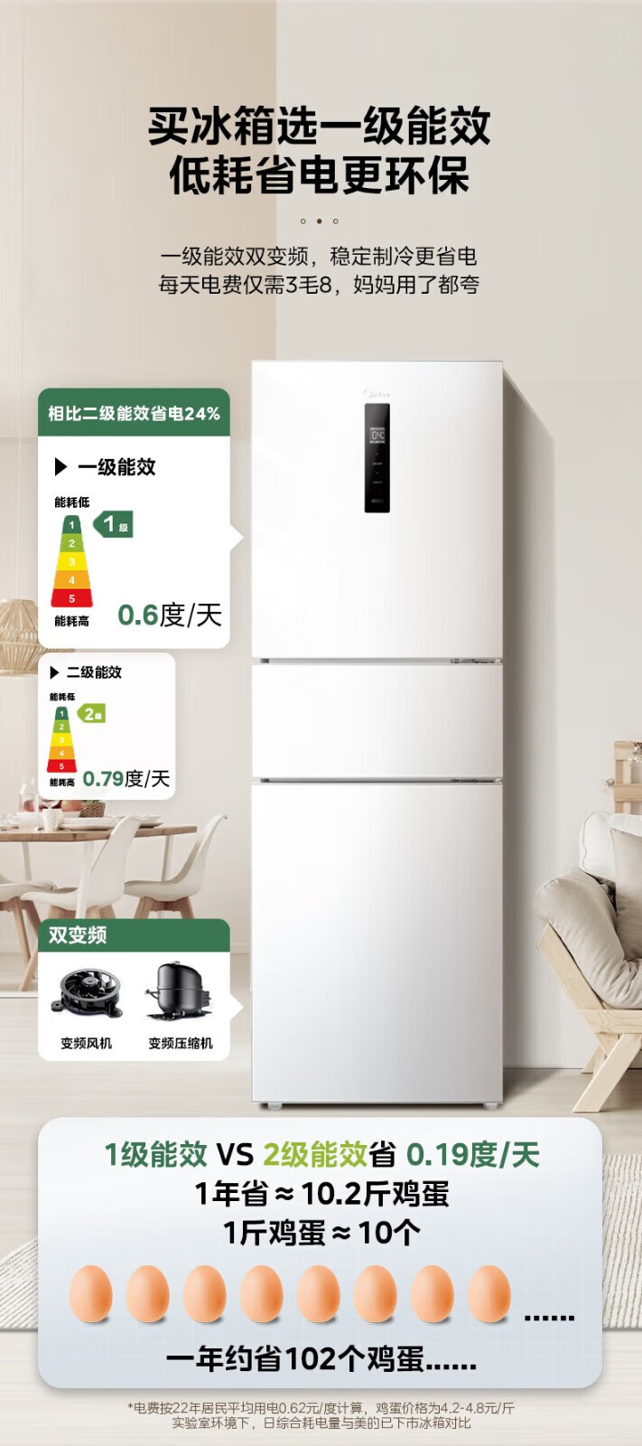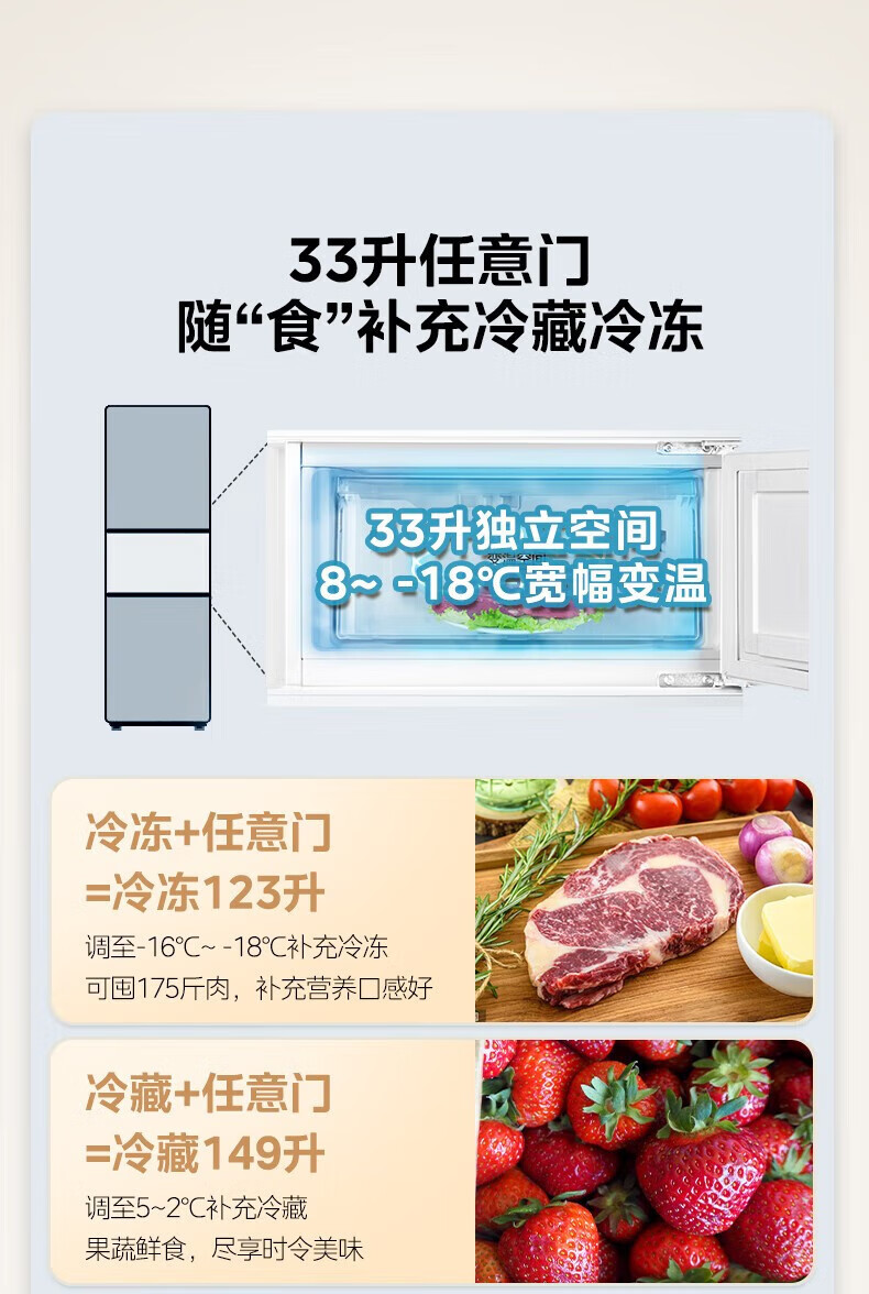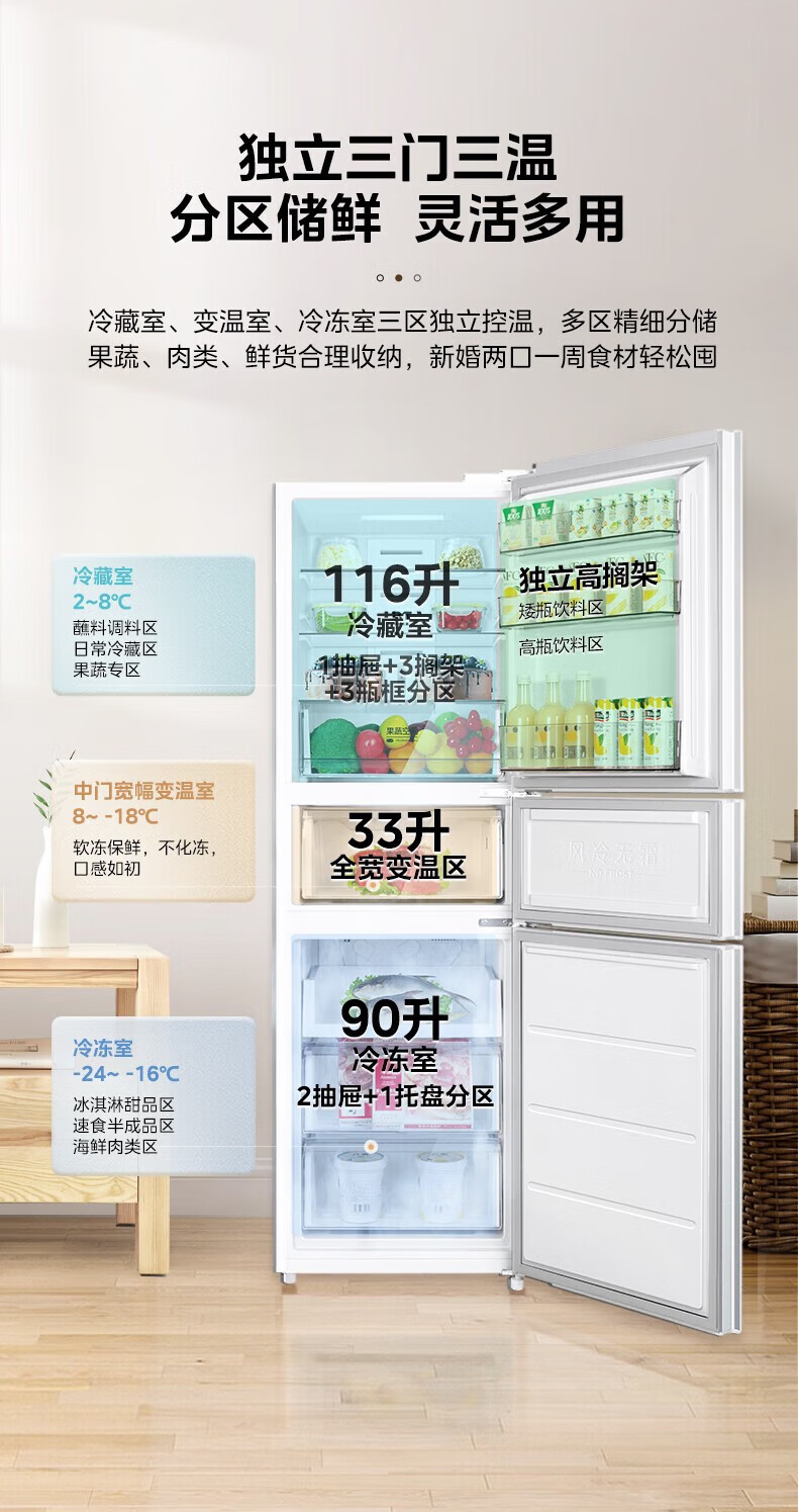 首页 / 家用电器 / 美的(Midea)三门家用小冰箱小型三开门风冷无霜变频一级能效节能省电轻音净味保鲜宿舍租房电冰箱风冷无霜变频一级MR-251WTPE