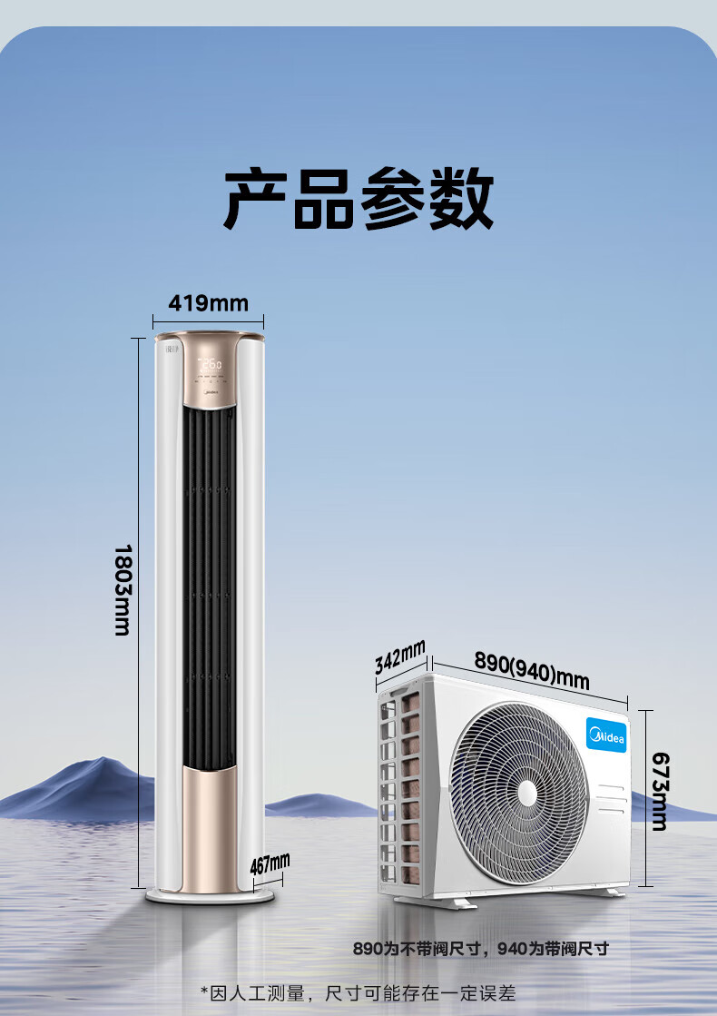 美的(Midea)空调柜机锐静Ⅱ二代新一级全直流变频制冷热加大出风口圆柱立式客厅柜机0.5°C精准控温3匹一级能效【高大风口】锐静Ⅱ