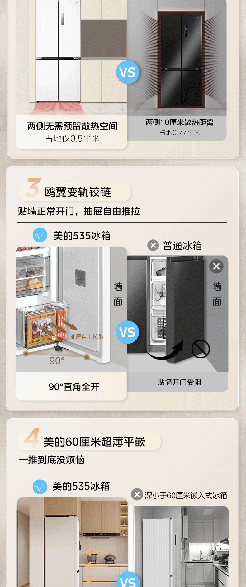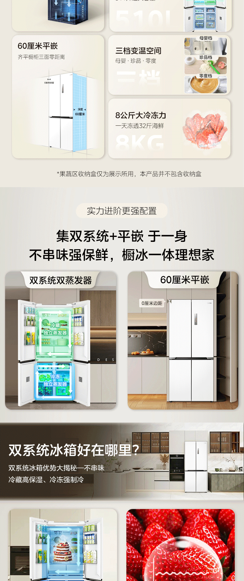 美的(Midea)510升M60系列十字对双四开门超薄零嵌入式双系统60cm变频无霜家用双系统双循环大容量冰箱风冷冰箱MR-535WUSPZE白色