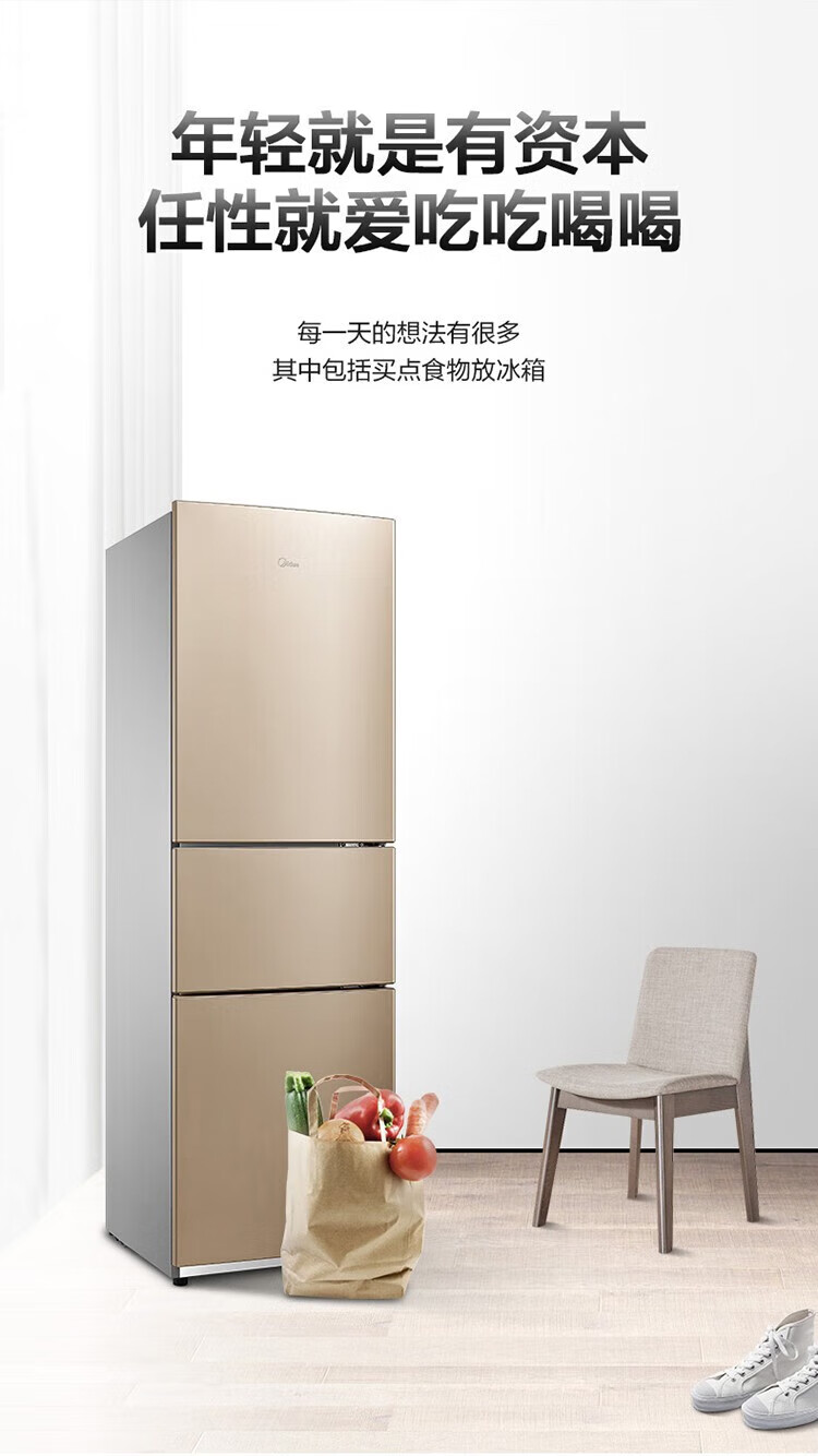 首页 / 家用电器 / 美的(Midea)213升三门三温区家用小冰箱三开门大容量中门软冷冻节能省电BCD-213TM(E)