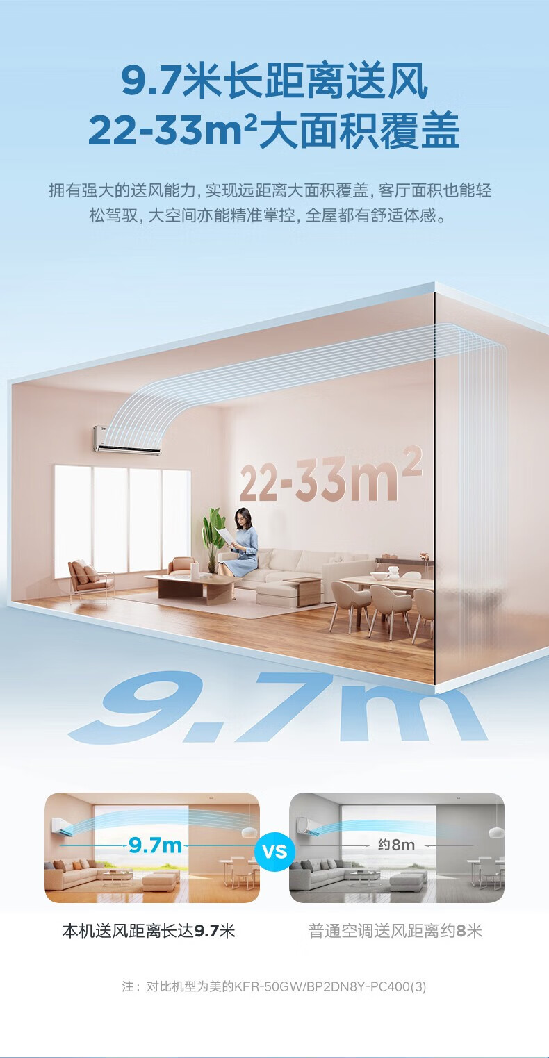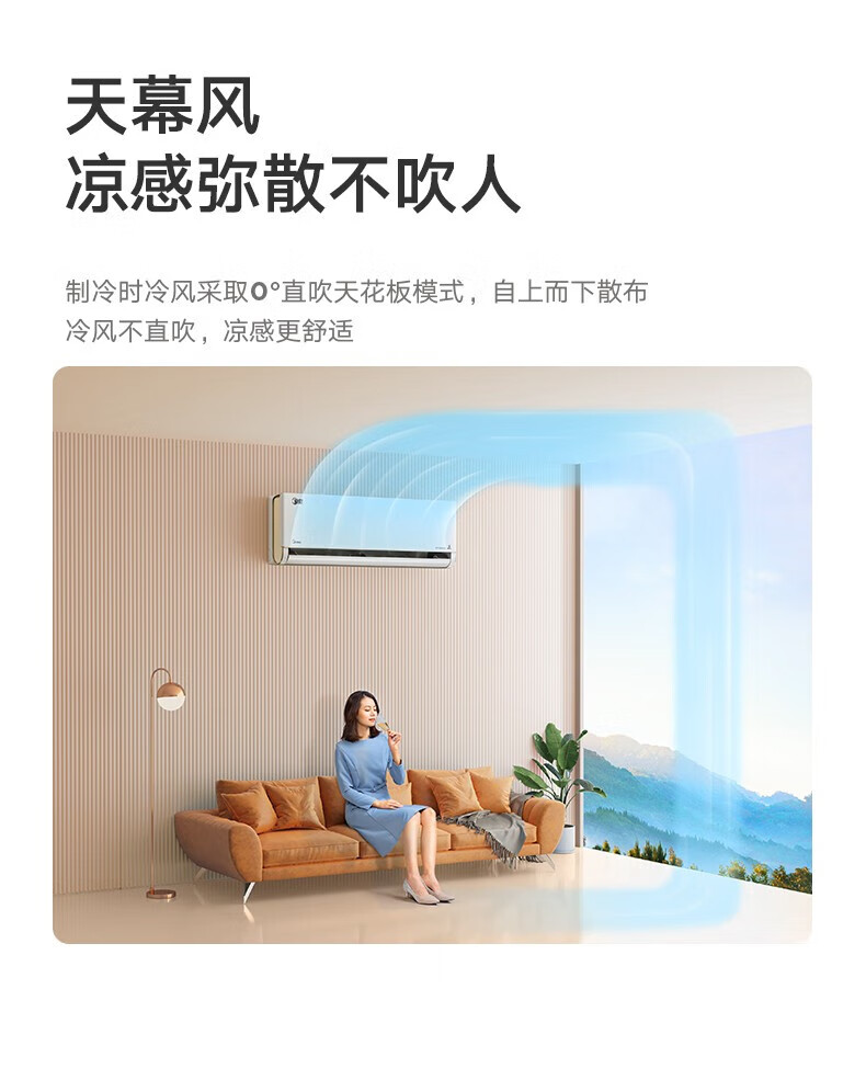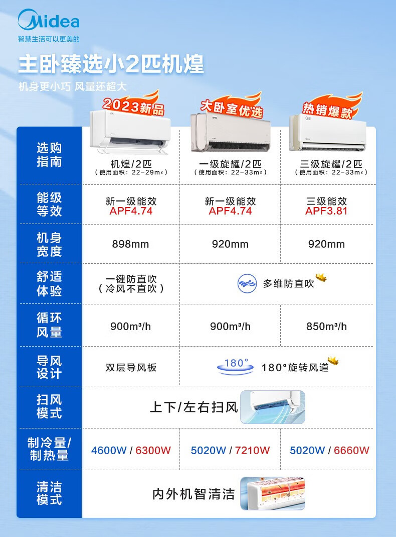 美的(Midea)空调挂机防直吹自清洁旋耀机煌2匹大挂机变频冷暖大风量挂机家用客厅商用餐馆壁挂式空调3匹三级能效+适用面积32-38平方