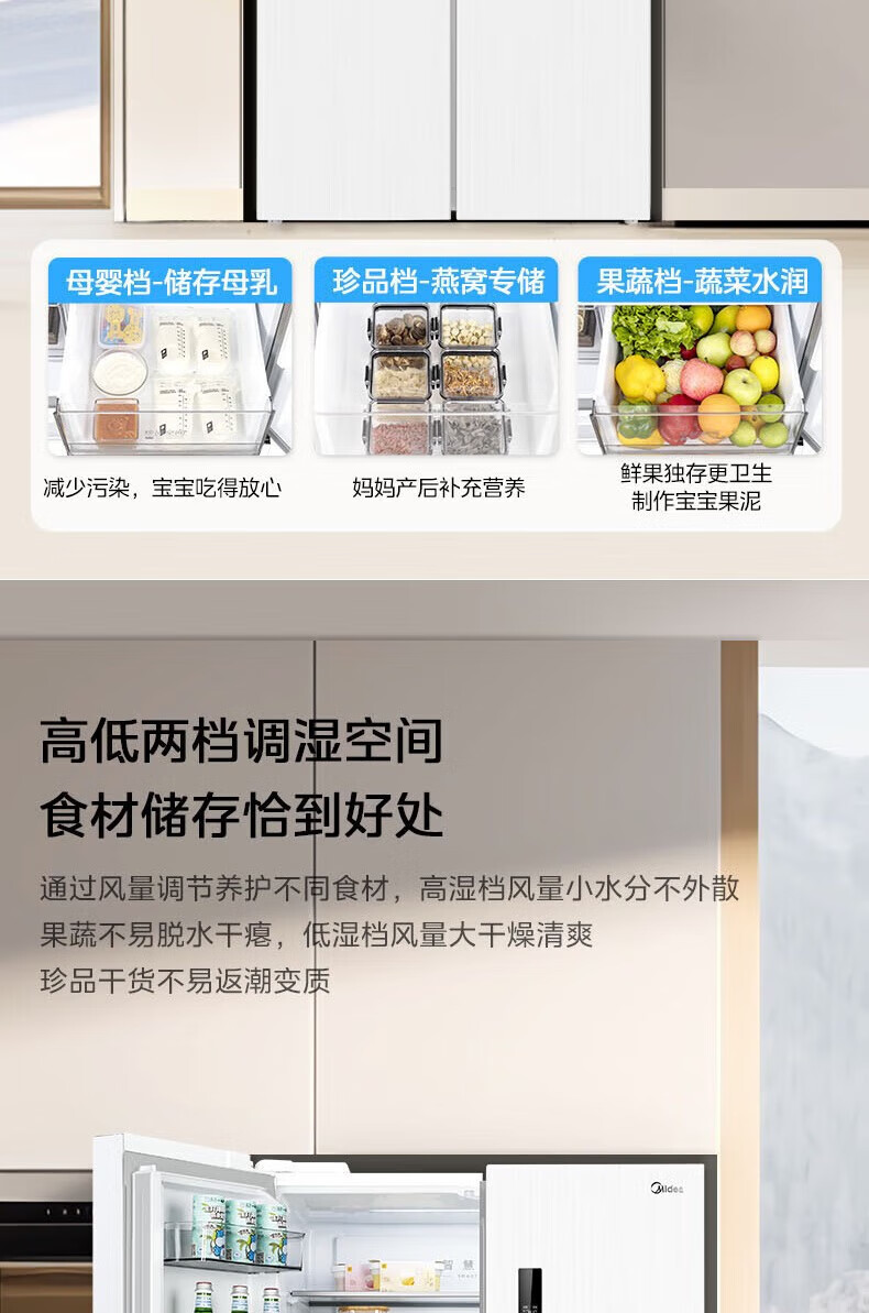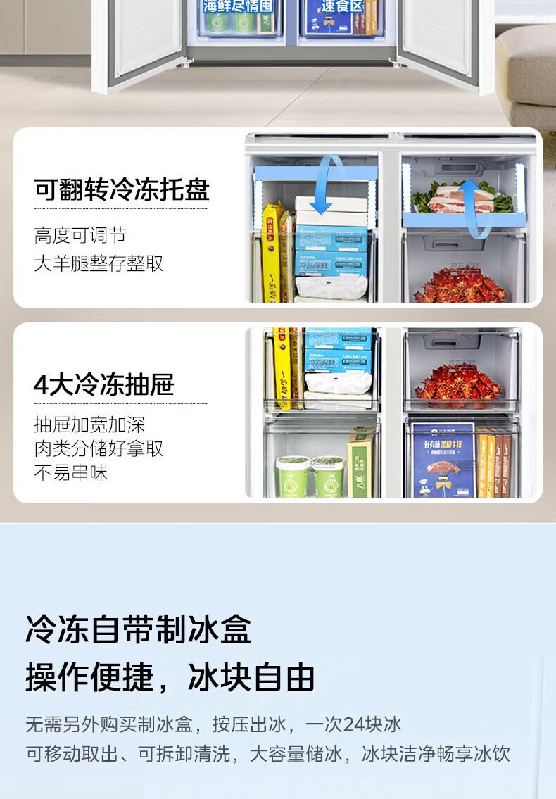 首页 / 家用电器 / 美的(Midea)十字对开门制冰盒冰箱四开门家用双系统双循环PT净味一级能效风冷无霜电冰箱MR-540WSPZE